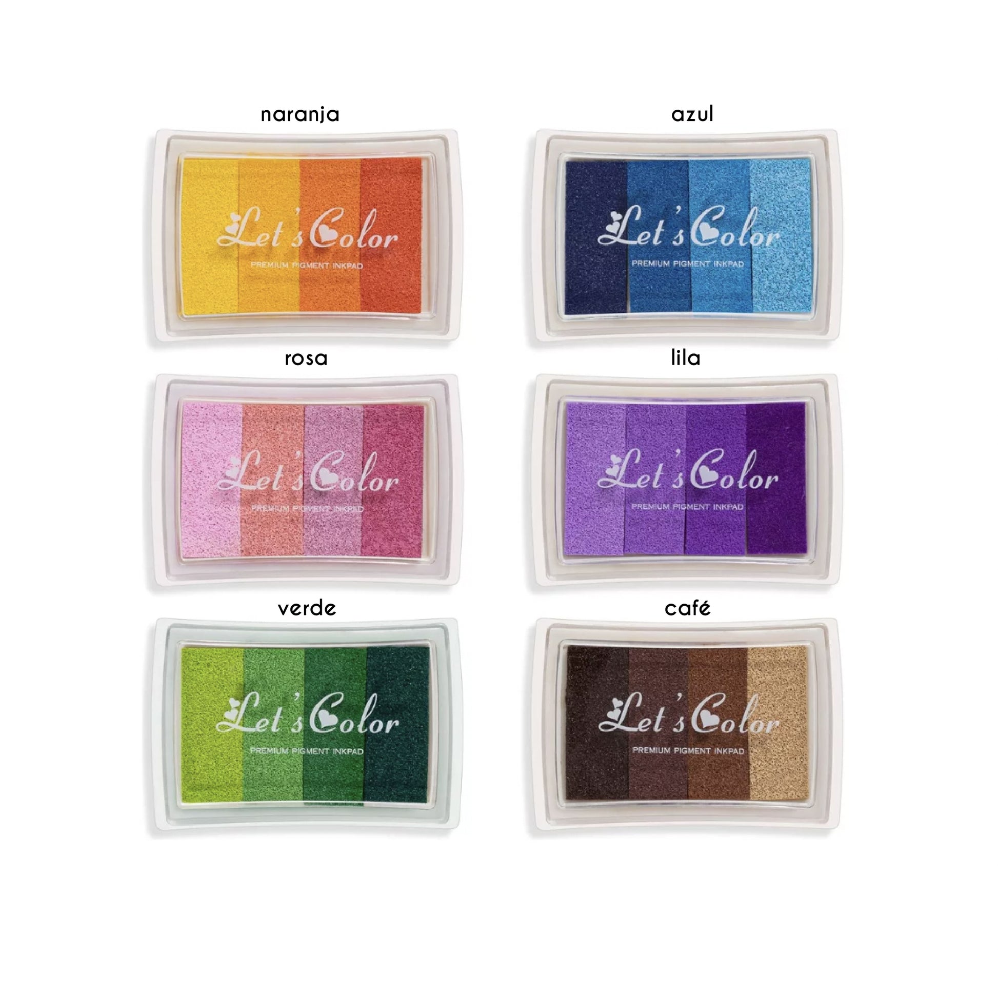 INCLUYE DOS COJINES DE TINTA CON 4 COLORES CADA UNO, en la última foto puedes ver las opciones de color, déjame en Notas que tono sería!