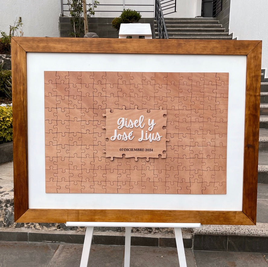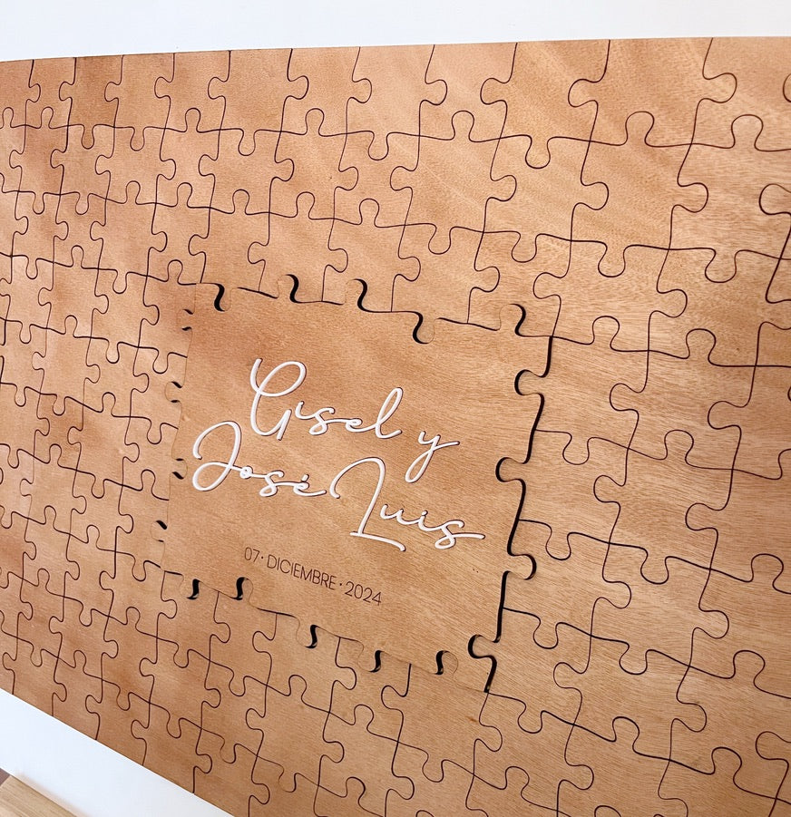 Fabricado con base de MDF DE 3MM de espesor y fichas con MDF con enchapado de okumé barnizadas en mate para que todos tus invitados te dejen un mensaje que perdure para siempre sobre el día más importante de sus vidas!