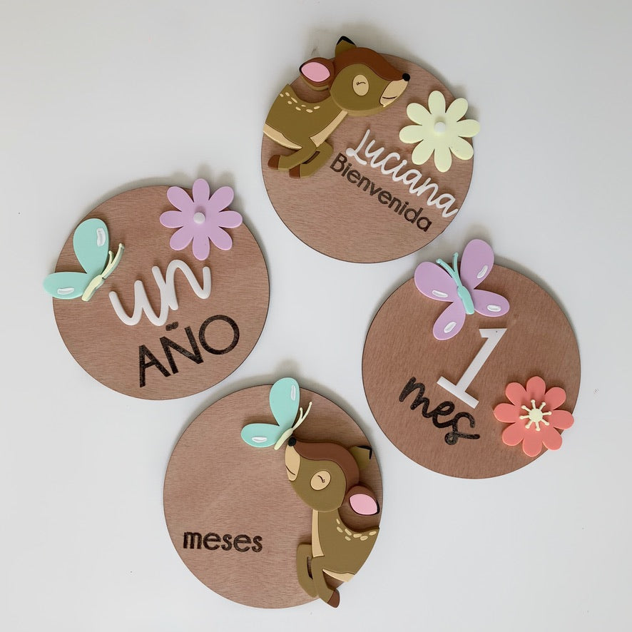 Los taggs incluyen 10 números en acrílico intercambiables y 4 círculos por set.