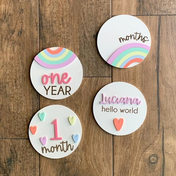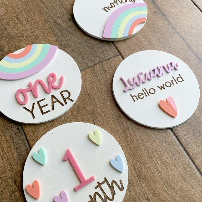 Los taggs incluyen 10 números en acrílico intercambiables y 4 círculos por set.
