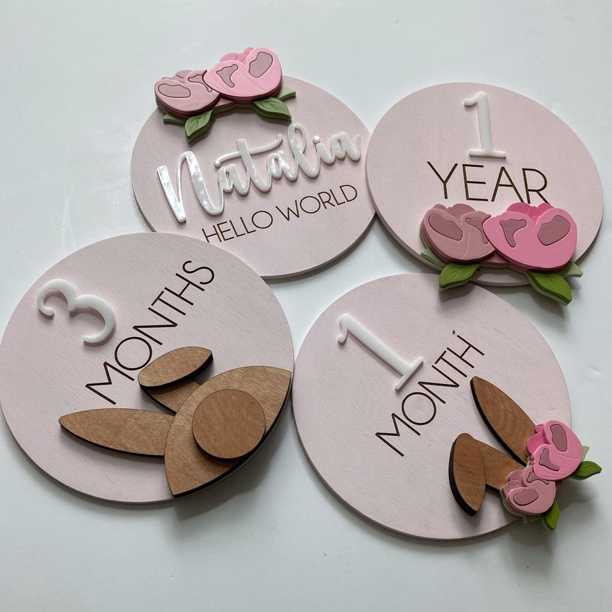 Los taggs incluyen 10 números en acrílico intercambiables y 4 círculos por set.