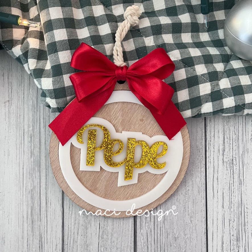Incluye el moño de listón satinado y la cuerdita para colgarse.