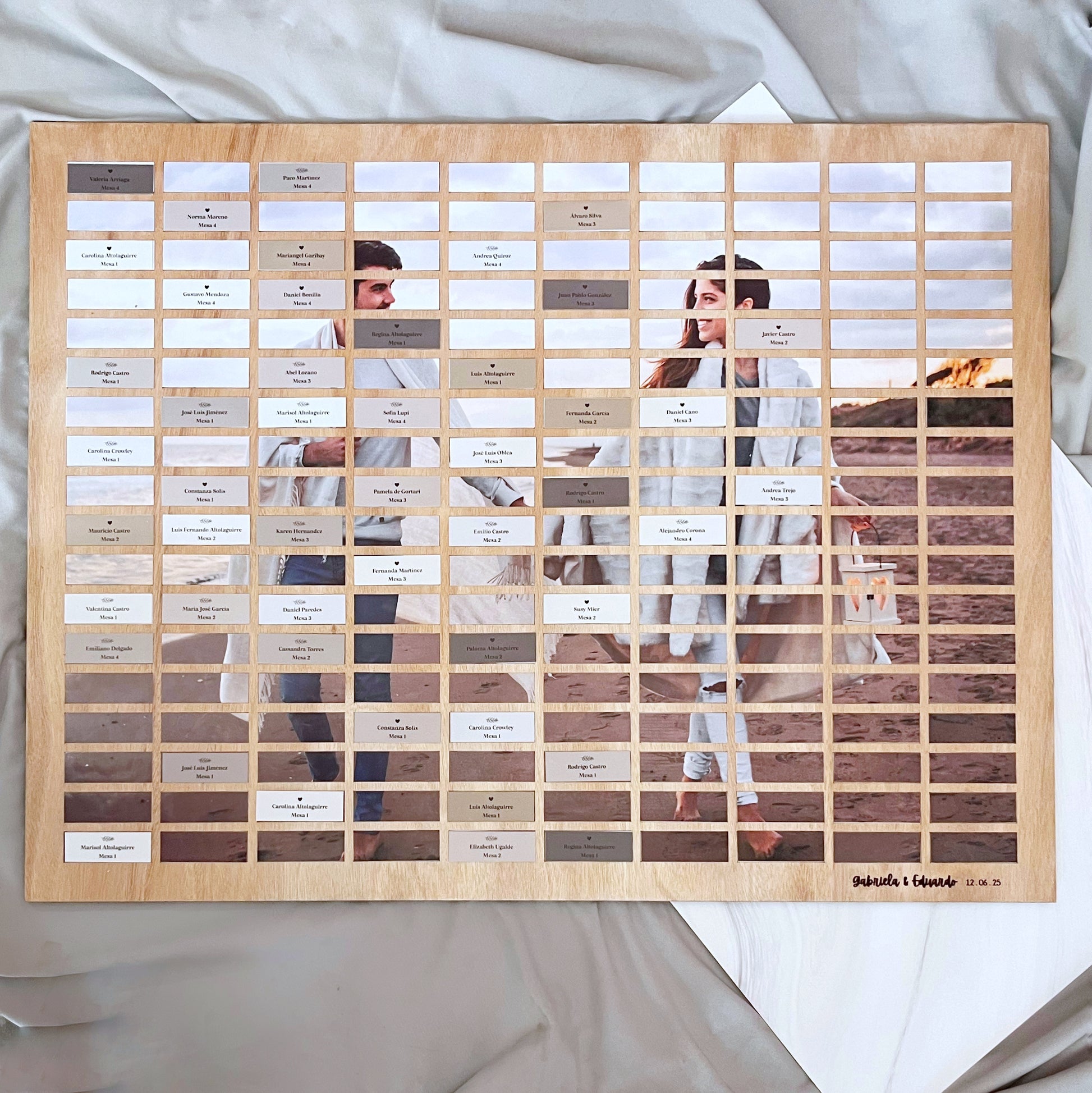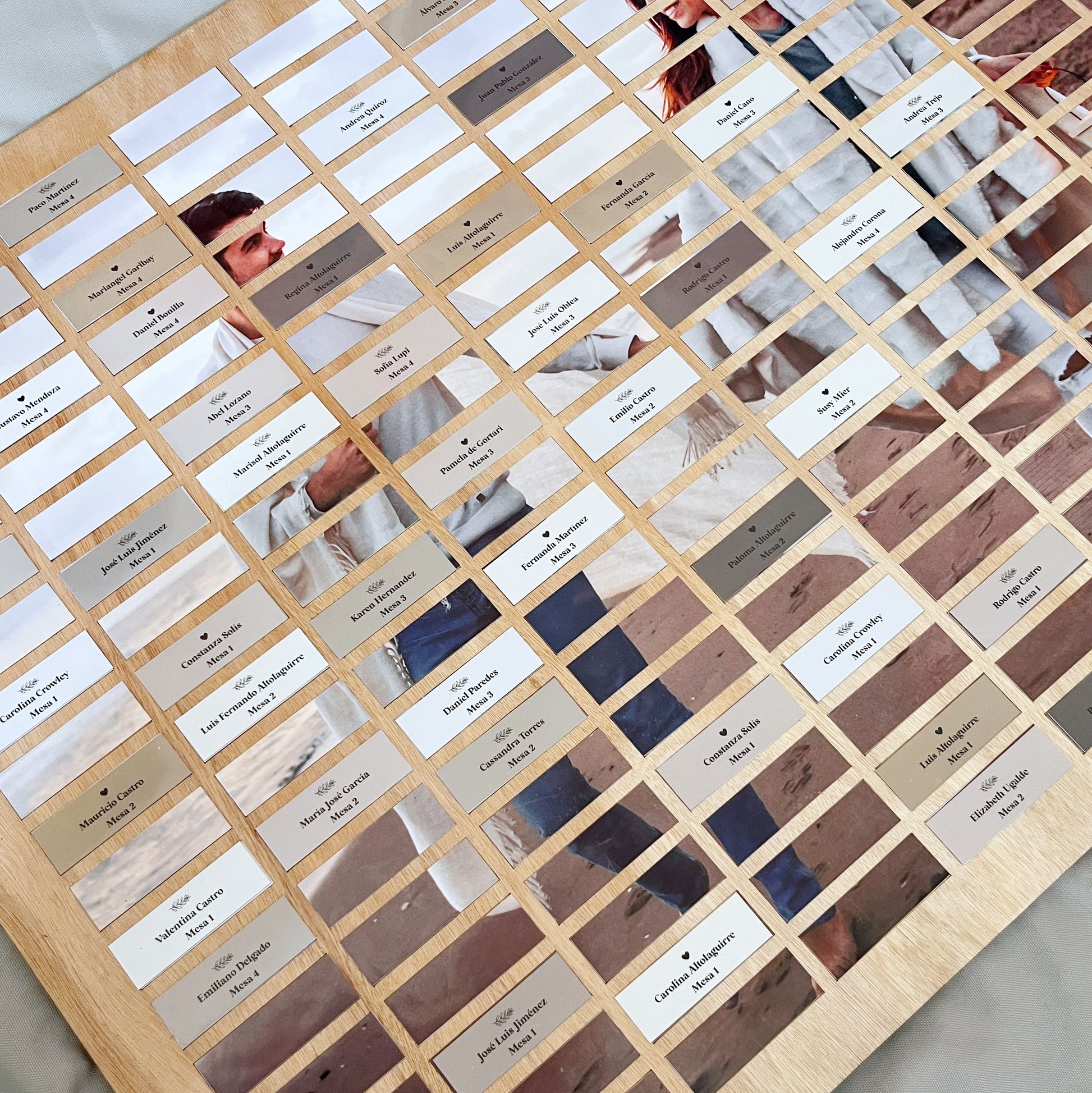 Que tus invitados se diviertan encontrando su mesa y descifrando la foto debajo de sus nombres!