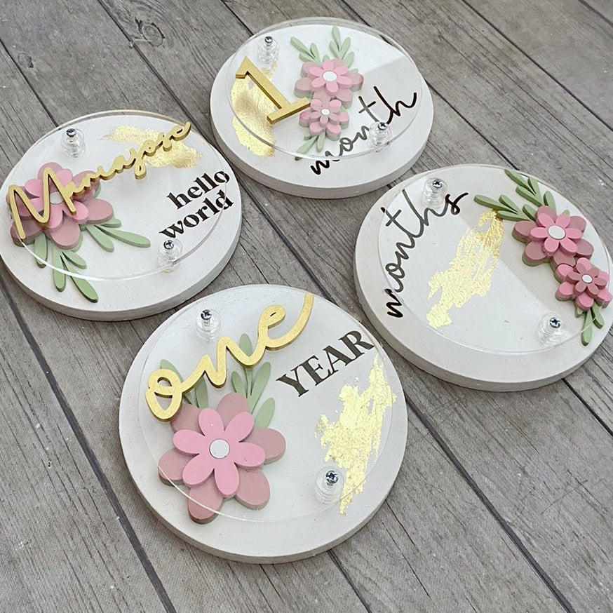 Los taggs incluyen 10 números en acrílico intercambiables y 4 círculos por set.
