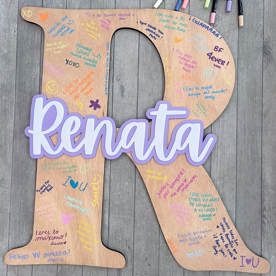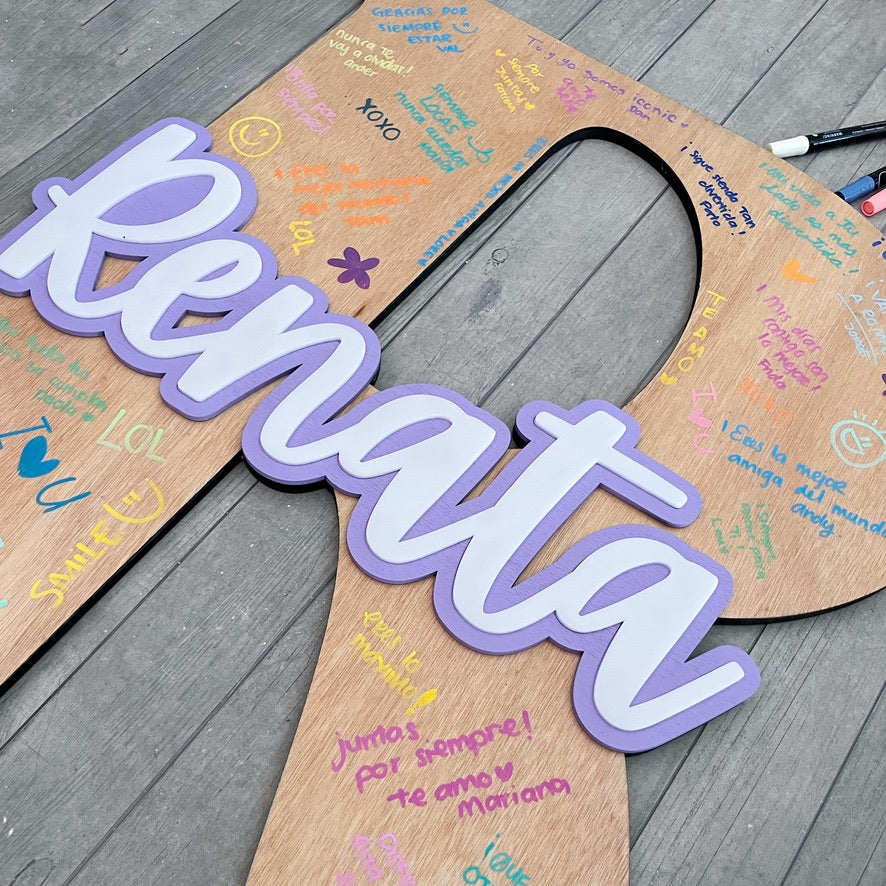 Inicial fabricada en Okumé de 9 mm de espesor, ideal para que todos tus invitados dejen un mensaje especial el día de tu evento!