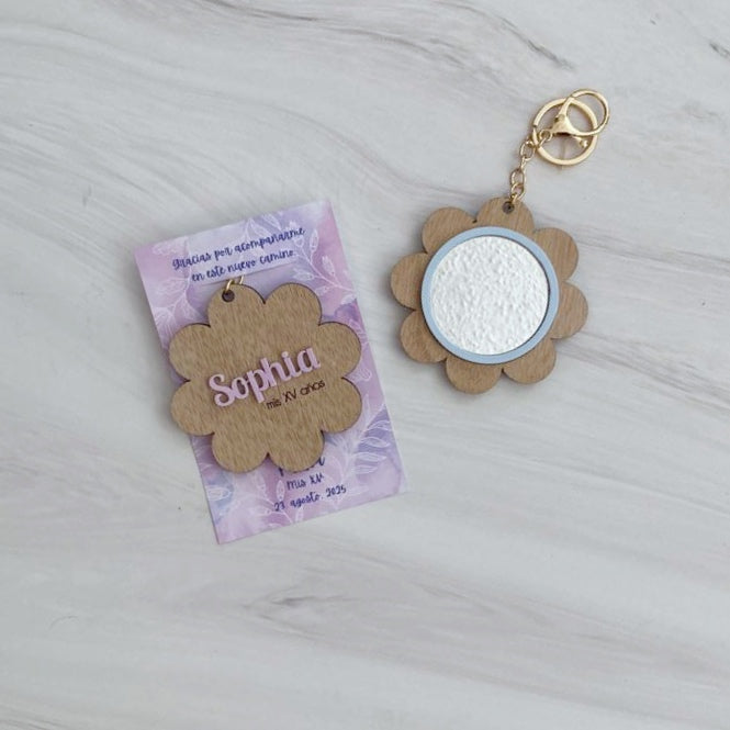 Te contactaremos para definir el diseño, la frase y los colores del acrílico de tus llaveros espejo!