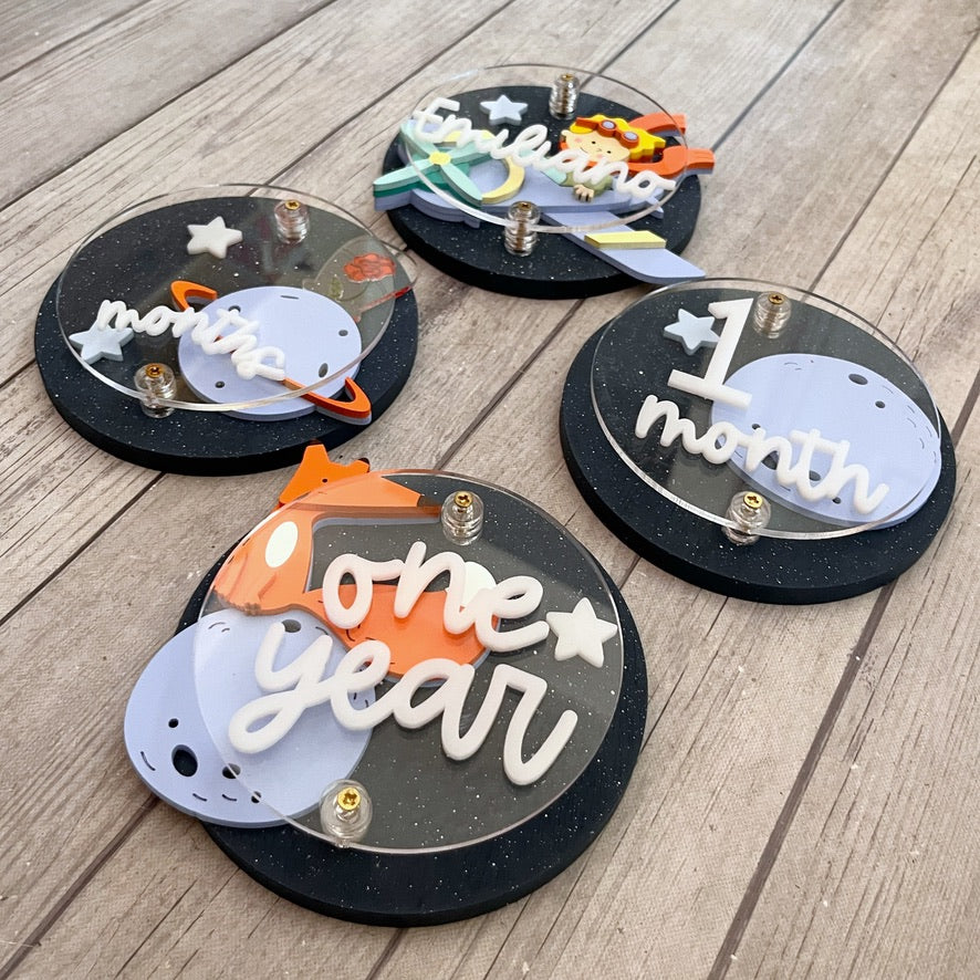 Los taggs incluyen 10 números en acrílico intercambiables y 4 círculos por set.