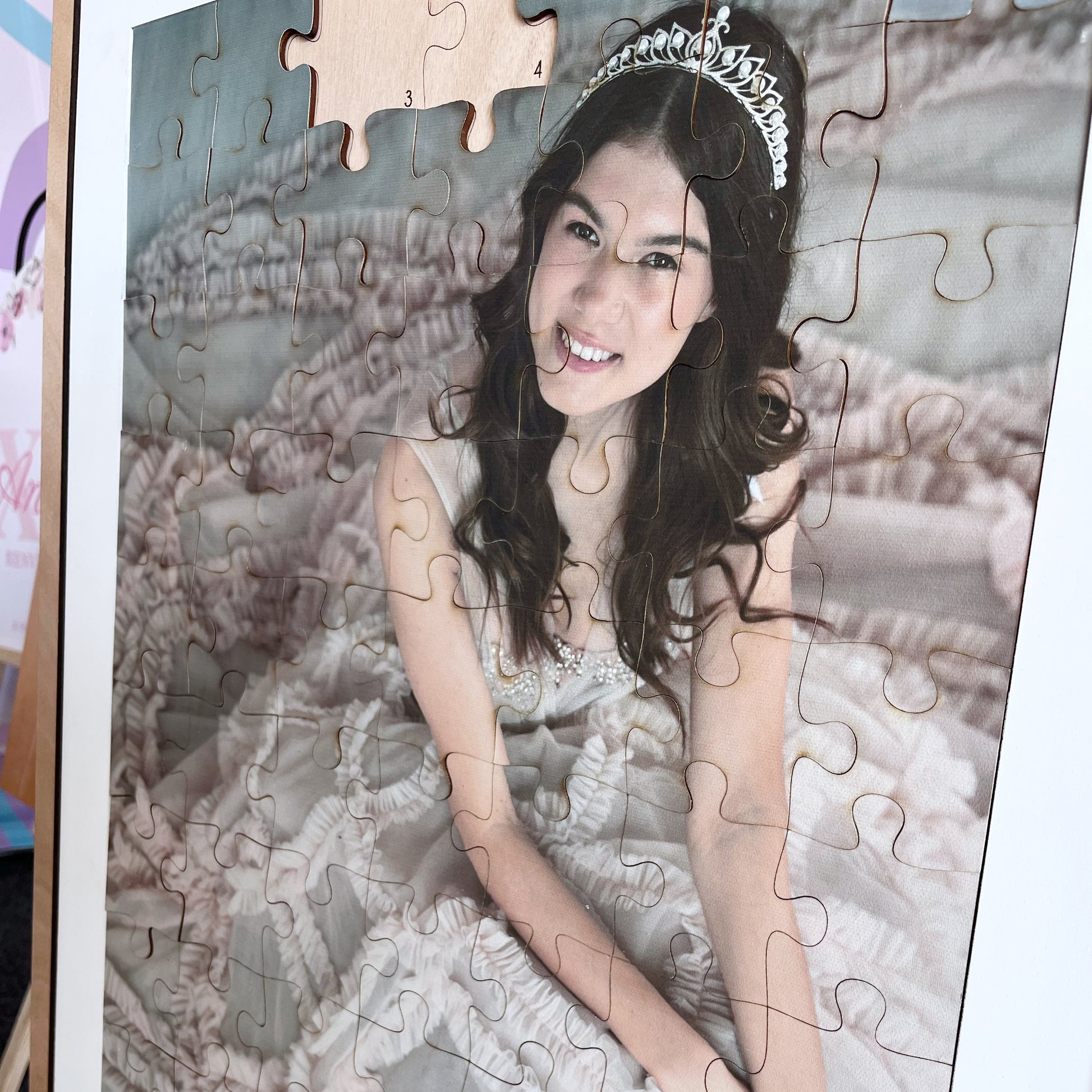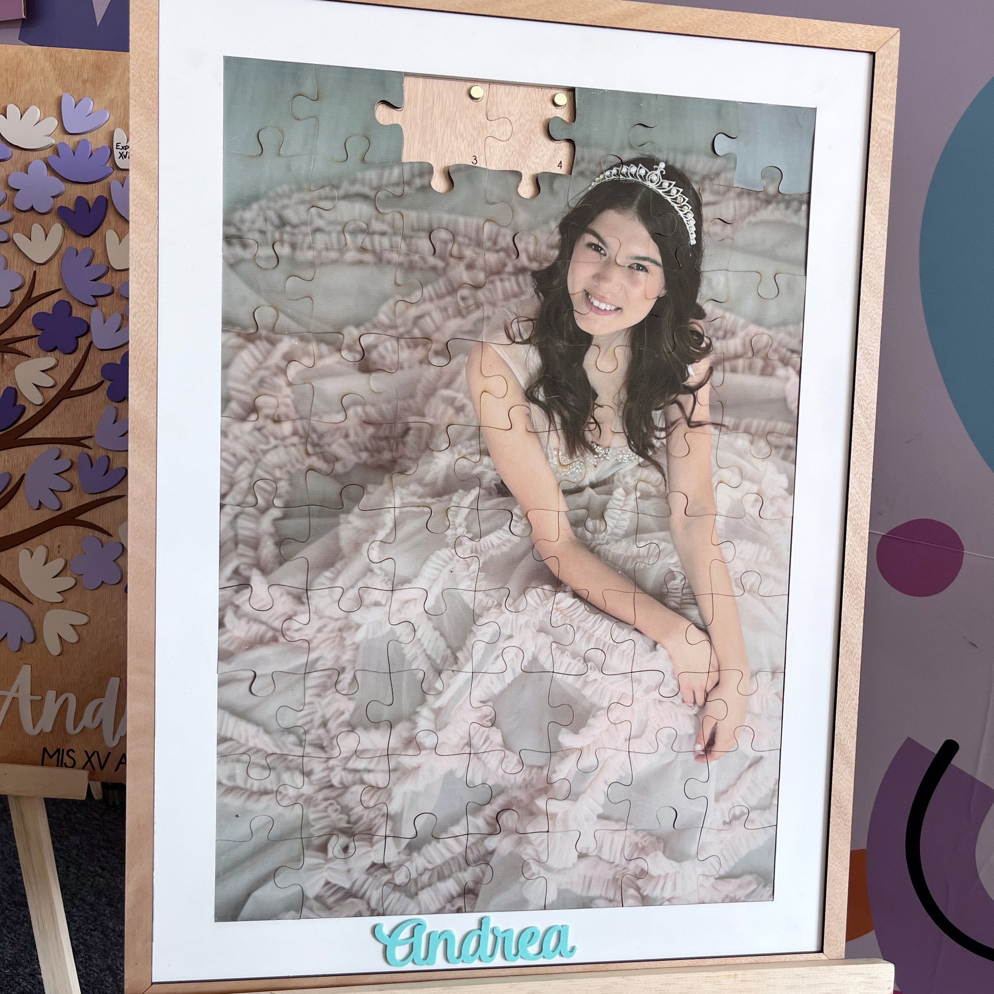 Que todos tus invitados te dejen su firma en cada pieza y puedan ayudarte a armar la foto de la quinceañera!