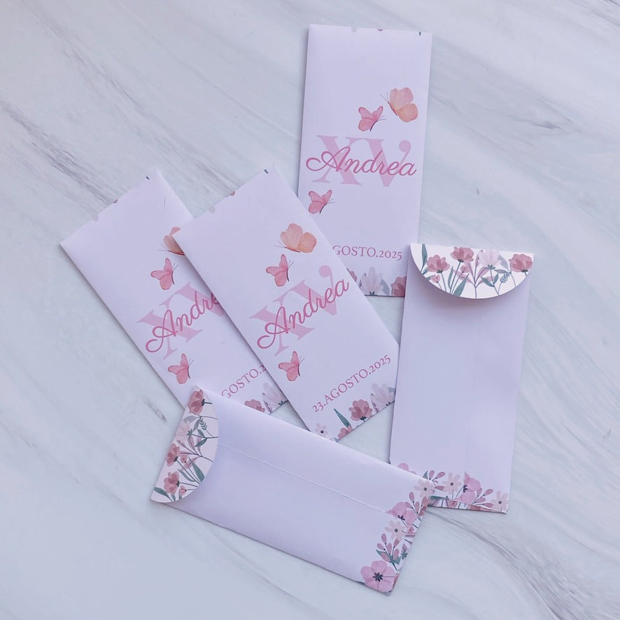 Sobres de papel personalizados, ideales para cualquier evento en donde se pida una cuota voluntaria como regalo.
