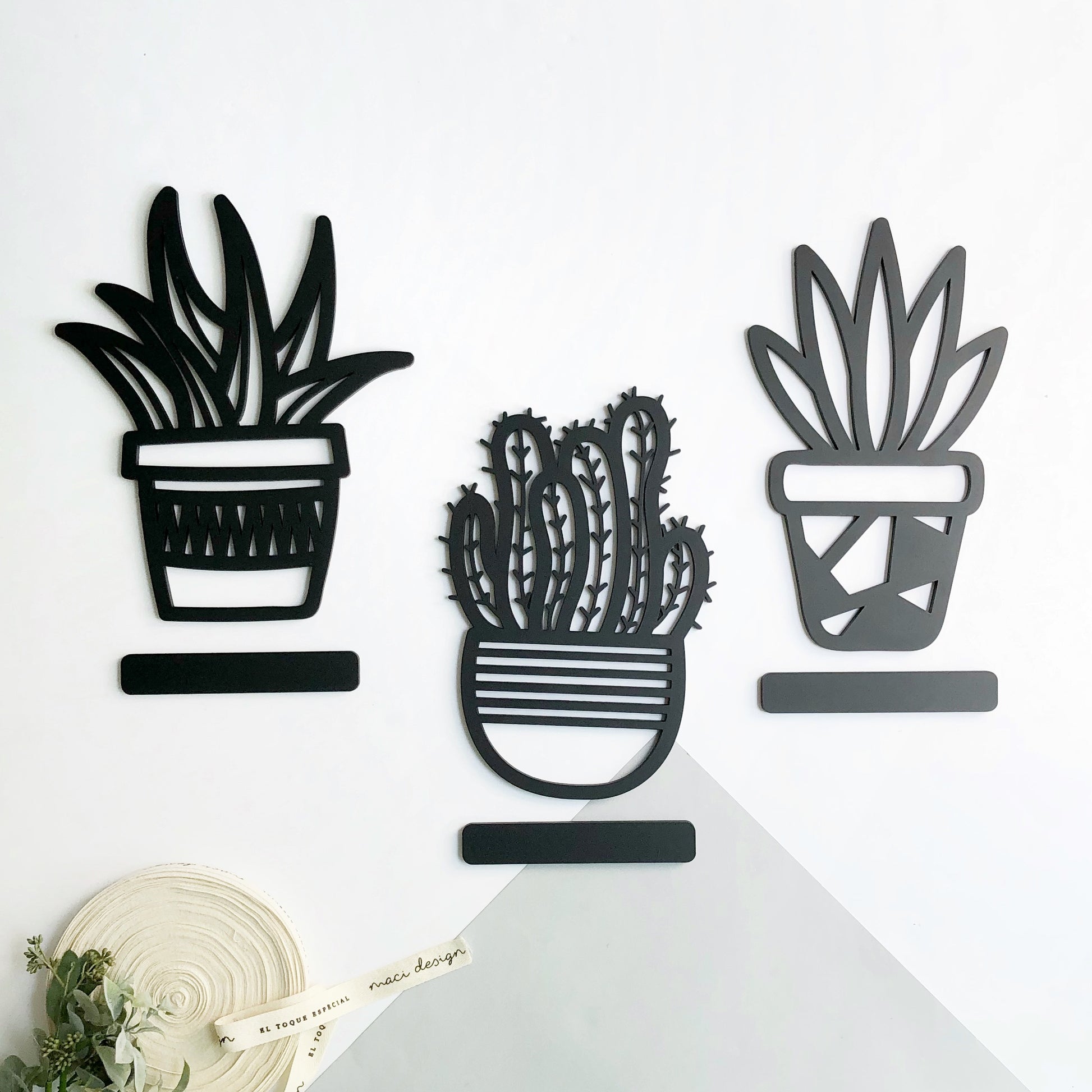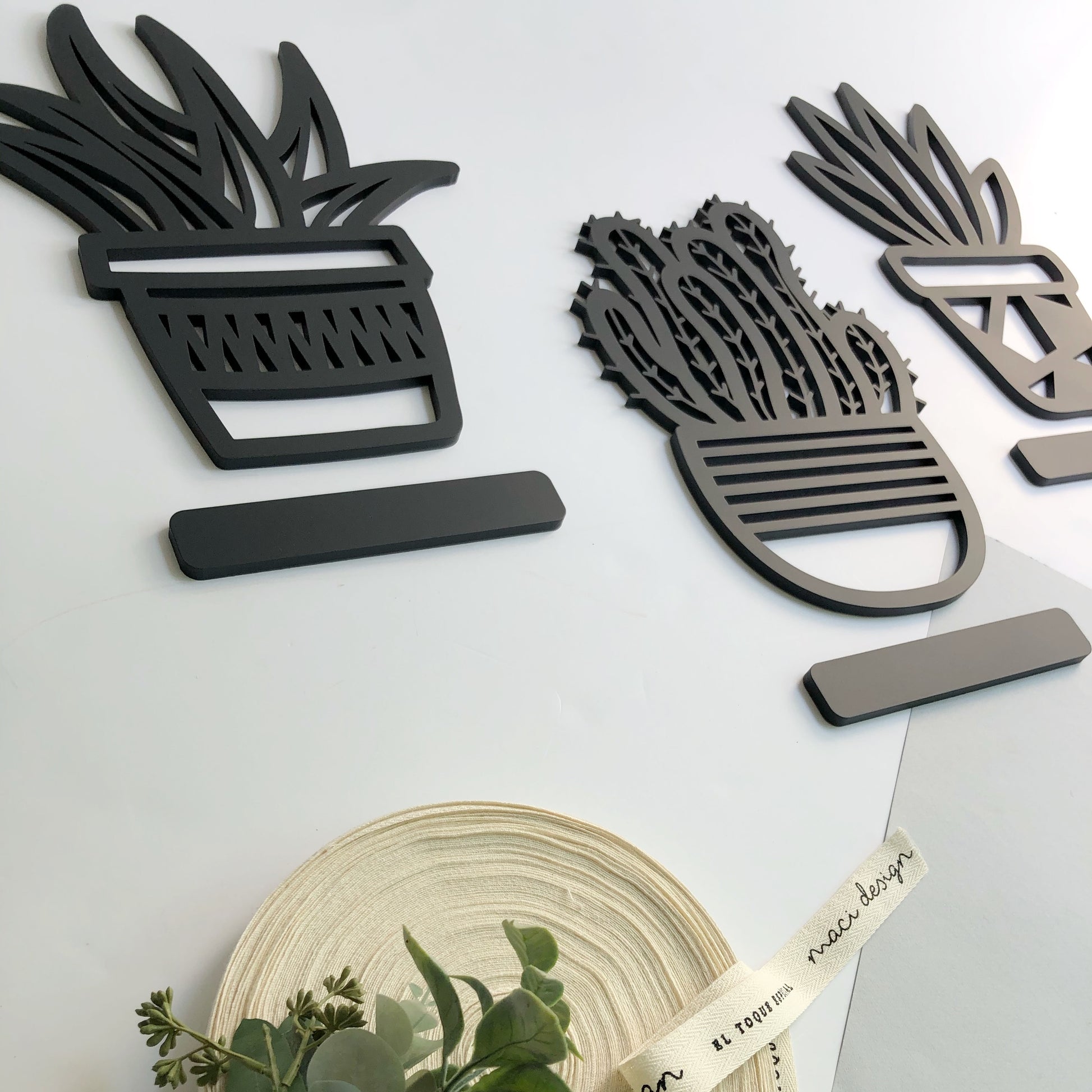 El set de suculentas incluye 3 macetas con sus bases, todos los cuadros vienen con cinta para pegarse directamente a la pared.