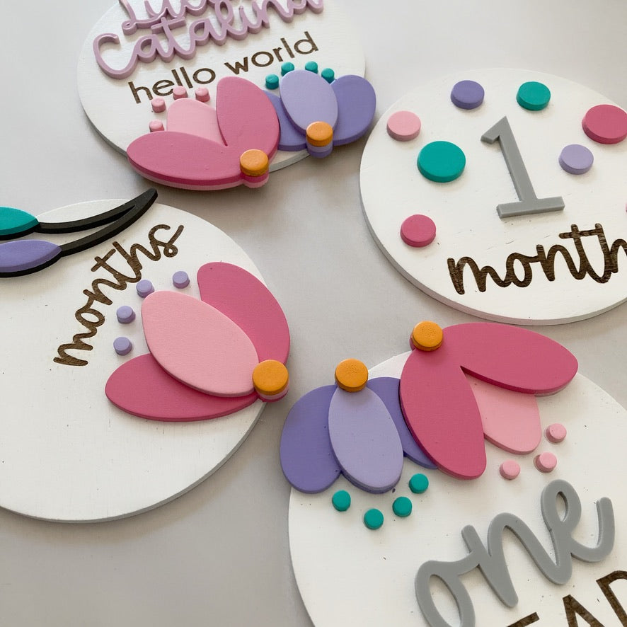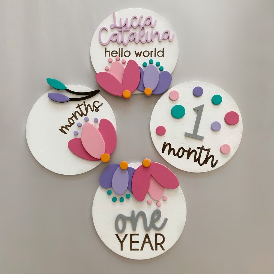 Los taggs incluyen 10 números en acrílico intercambiables y 4 círculos por set.